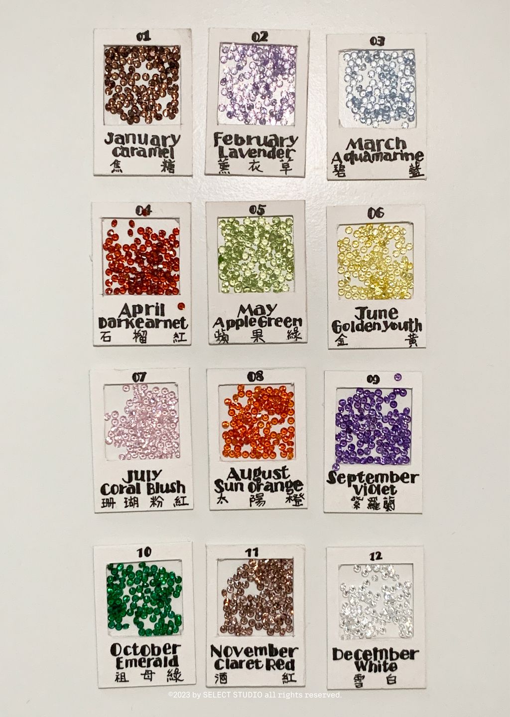 *Please choose 5 colors from the 12 gemstones and enter your selections from left to right in the order remarks!